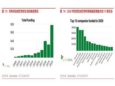 僅2021年第一季度,合成生物學(xué)領(lǐng)域的投資就超過2009-2019年11年的總額,僅略低于2020年全年的投資,如果當(dāng)前的熱度及融資率維持不變,預(yù)計(jì)合成生物學(xué)行業(yè)融資額將較2020年增長(zhǎng)200%-400%。