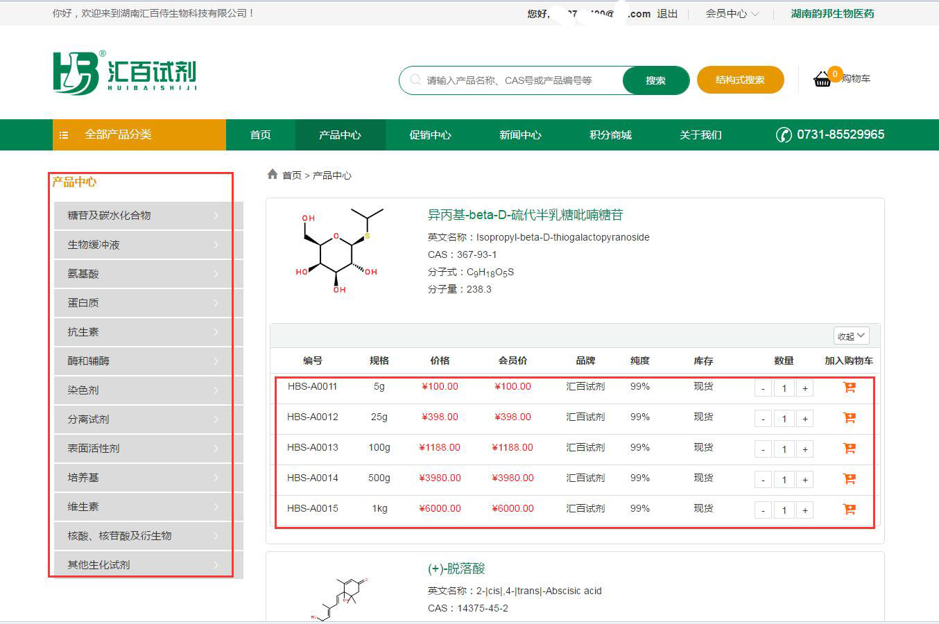 目前我們擁有上千款生化試劑品種,根據(jù)產(chǎn)品的不同包裝規(guī)格進行定價,價格展示一目了然,用戶可以根據(jù)產(chǎn)品名稱或者CAS號進行產(chǎn)品及商品價格查詢。
