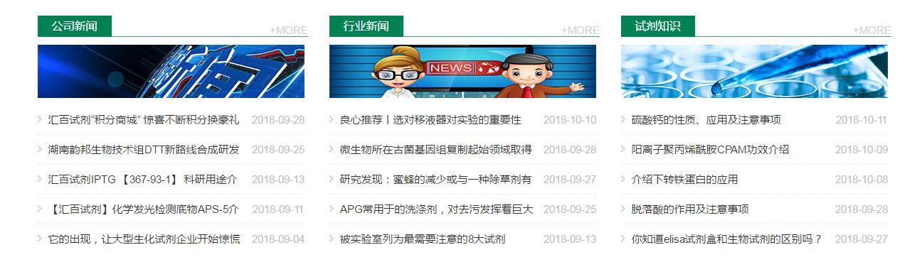 為了方便用戶更快捷的查找產(chǎn)品和及時了解行業(yè)資訊等內(nèi)容,我們建立了“匯百試劑”官方商城。匯百試劑網(wǎng)站秉承“信譽為企業(yè)生存之本”的宗旨。在布局上,首頁設(shè)有5大導(dǎo)航板塊,各板塊功能明確、內(nèi)容豐富,方便您快捷獲取想要的產(chǎn)品服務(wù)信息。